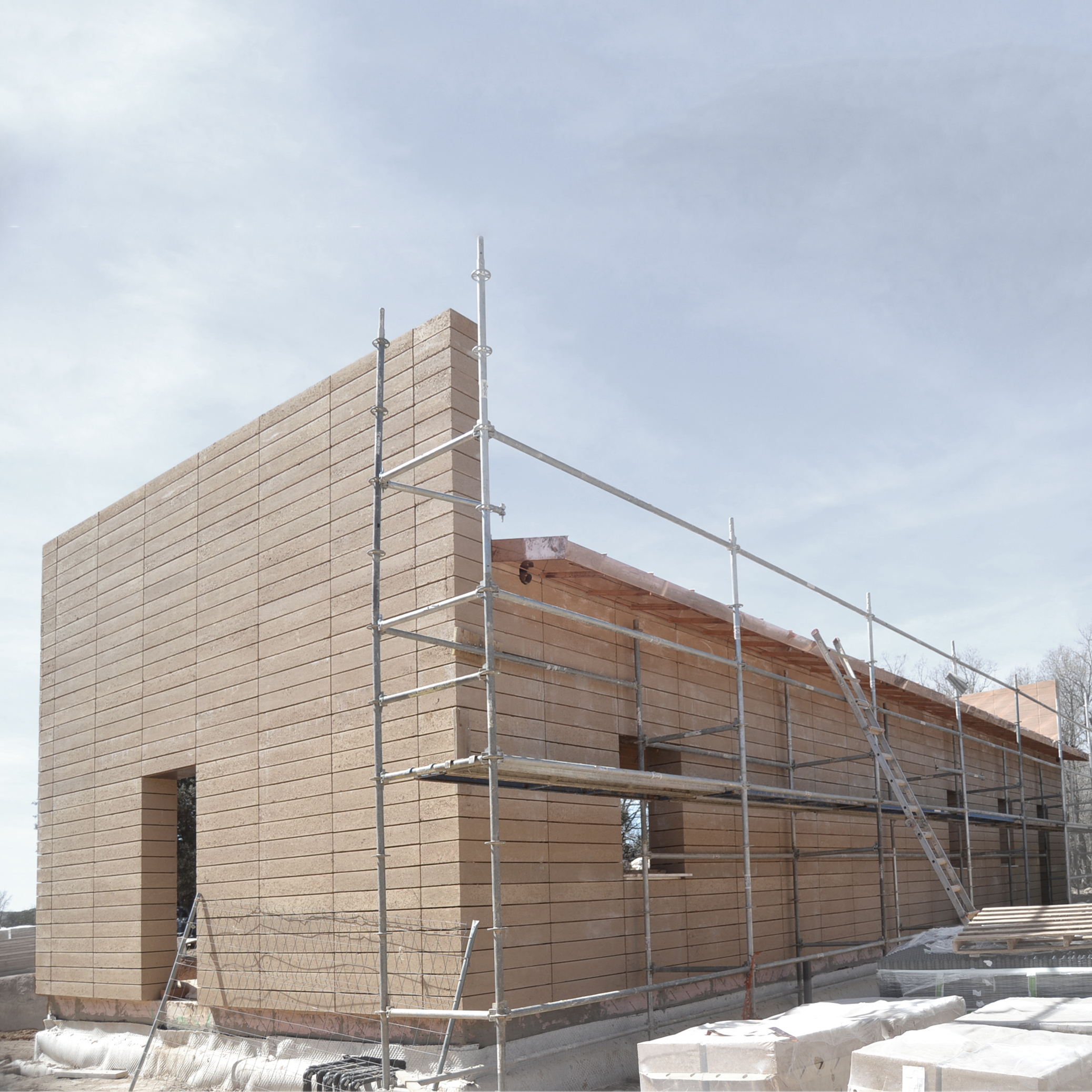 Prefabricated earth blocks Tapialblock® from @fetdeterra, structural blocks, large format 40x100x15 cm. Blocks seen from the outside and inside